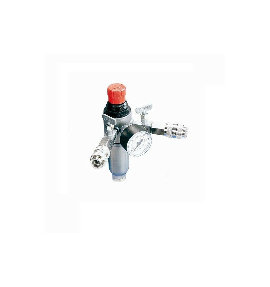 Réducteur de pression 3/8" avec manomètre avec 2 sorties séparées et robinets . Manodétendeur pour controler efficacement votre pression en fonction des outils utilisés.